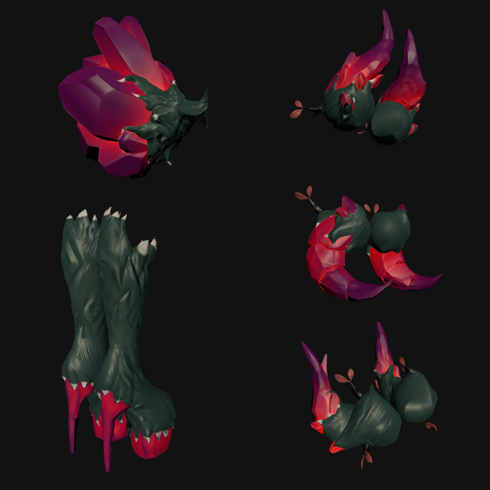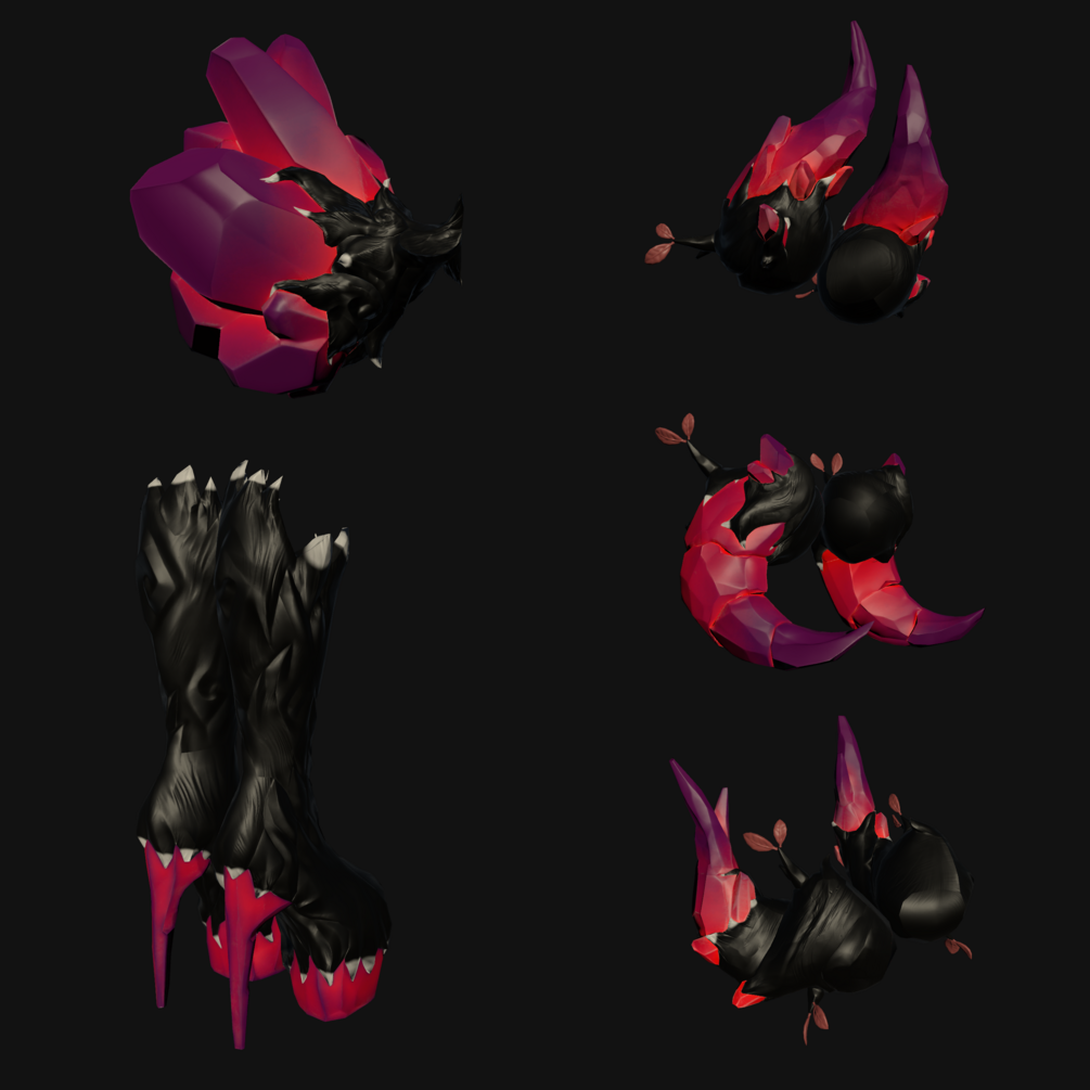 - The selected Versions Albedo, Normal and Occlusion textures for the boots, tail, horns up, horns round, horns back and Roona's Hair (unless it's the full set which contains all the Albedo, Normal and Occlusion textures for each version).